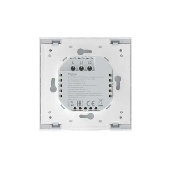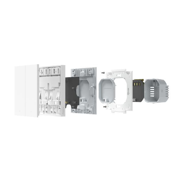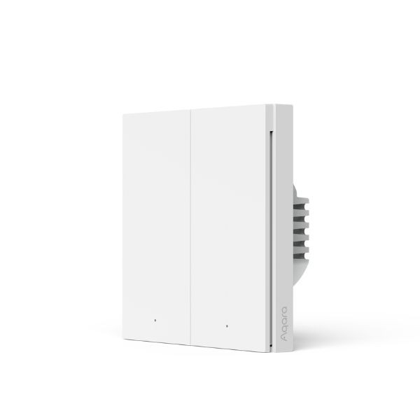 Aqara okos Zigbee 3.0 villanykapcsoló, két áramkör vezérlésére, fizikai nyomógombos kivitelben. Bekötéséhez nulla vezeték nem szükséges. Ez a fehér színű termékverzió.