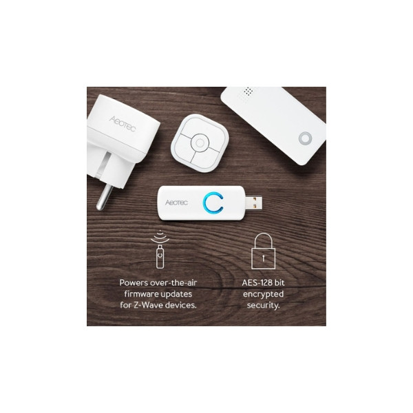 Az Aeotec Z-Stick Gen5+ egy USB-s Z-Wave vezérlő beépített akkumulátorral, amely lehetővé teszi saját Z-Wave hálózat létrehozását nyílt forráskódú platformokkal, mint például a Home Assistant. Kompatibilis a Raspberry Pi 4-gyel, támogatja a SmartStart és S2 biztonsági funkciókat.​