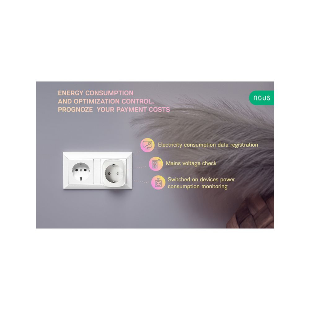 A Nous A7 okos Wi-Fi-s konnektor a népszerű Tuya okosotthon platformot használja távoli vezérlésre és automatizációkhoz. Nagyobb teljesítményű verzió, max 16A kapcsolására képes, fogyasztásmérővel felszerelt típus, így nem csak vezérelhetjük vele elektromos eszközeinket, hanem a fogyasztásukat is mérhetjük.
