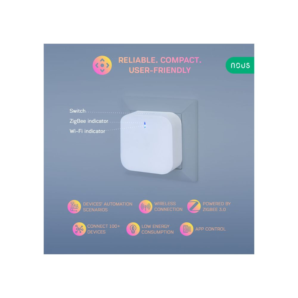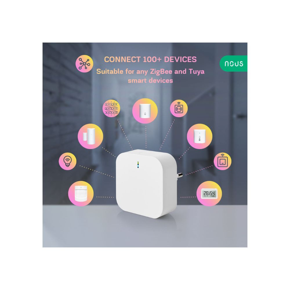 A Nous E1 egy Zigbee Tuya és egy Wi-Fi chip-el felszerelt, Tuya / SmartLife okosotthon APP-al kompatibilis Zigbee átjáró. A Tuya Zigbee chip-el szerelt eszközök (kapcsolók, érzékelők, relék stb.) Tuya okosotthon rendszerhez való illesztésére szolgál.