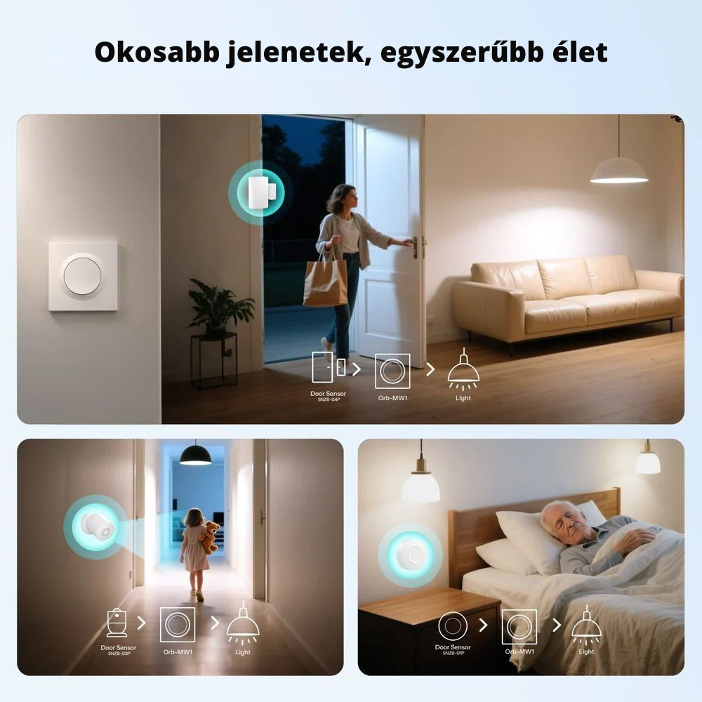 • Jelenetek és automatizálások: eWeLink „Smart Scene” és Matter-alapú automatizálások; együttműködés SONOFF szenzorokkal és kapcsolókkal.