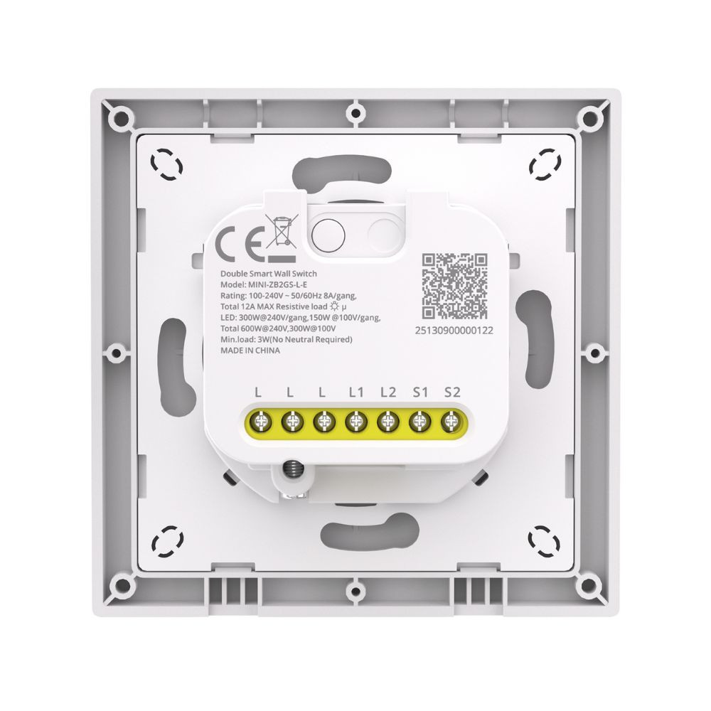 SONOFF Orb-ZBW2L  2-Gang Zigbee Smart Wall Switch (No Neutral) – két áramkörös, csak fázis mini relémodul + kapcsoló, Zigbee, fehér (MINI-ZB2GS-L-E)