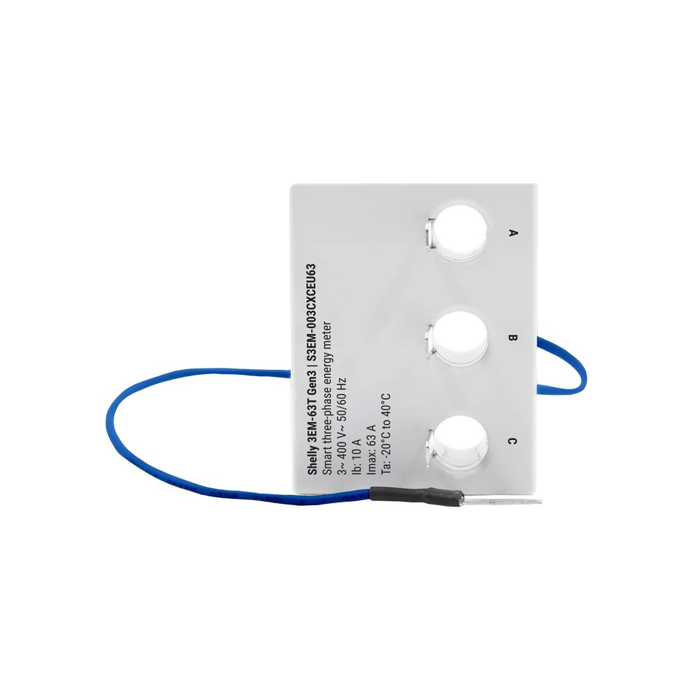 • Shelly 3EM-63W Gen3: Ez a modell vezetékekkel van ellátva, amelyek rugalmasabbá teszik a telepítést, különösen akkor, ha az eszközt nem lehet közvetlenül a megszakítóhoz csatlakoztatni. Ez a kialakítás lehetővé teszi az eszköz távolabbi elhelyezését a megszakítótól, ami hasznos lehet bizonyos telepítési környezetekben.