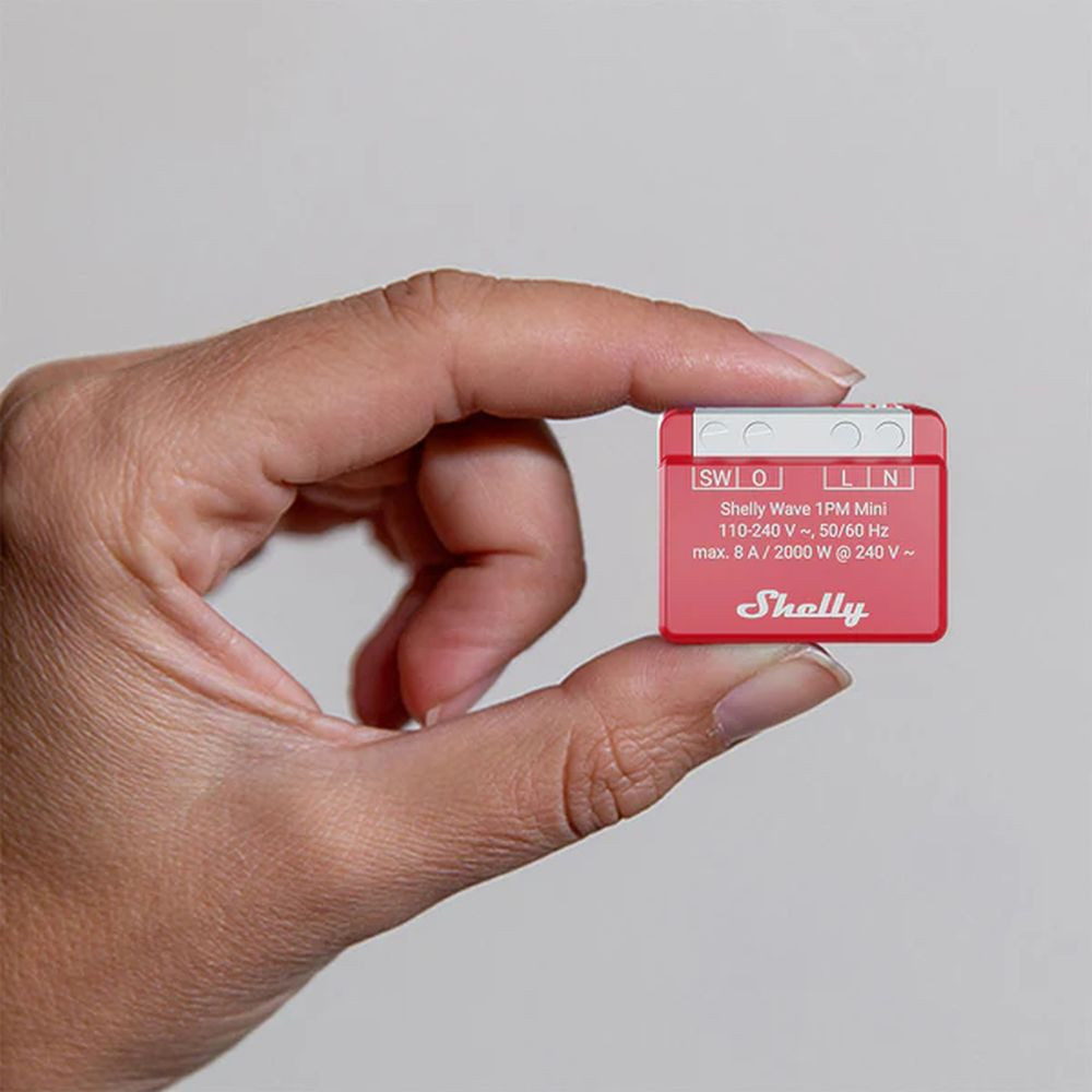 A Shelly Wave 1PM mini okosrelé modul egy szerelvénydobozba szerelhető, 1 áramkör vezérlésére képes, fogyasztásmérős, Z-Wave 800 eszköz. Így szükség van a vezérléséhez egy Z-Wave hub-ra vagy USB koordinárorra. Megtáplálása 230V AC váltóáramú feszültségekről történik. Feszültségmentes kapcsolásra nem alkalmas.