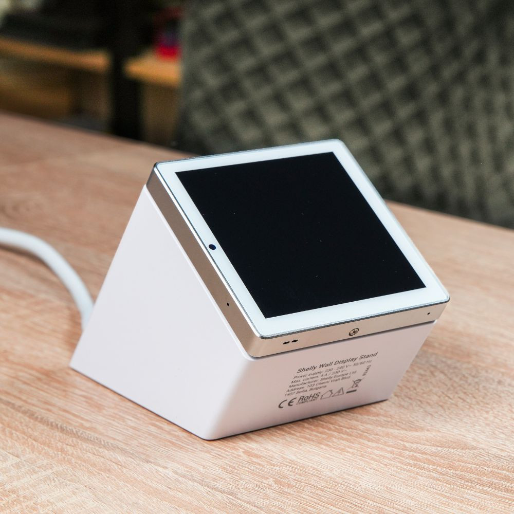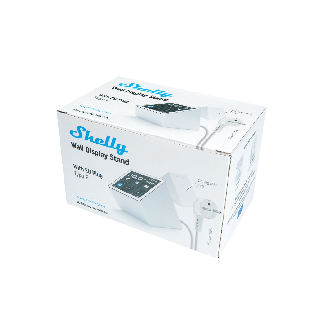 A Shelly Wall Display Stand egy asztali tartó, amelyet kifejezetten a Shelly Wall Display-hez terveztek, és lehetővé teszi, hogy a kijelzőt kényelmesen asztali vezérlőpanelként használd. A tartó beépített vezetékezéssel és hálózati csatlakozóval érkezik. Ez a fehér színű változat.