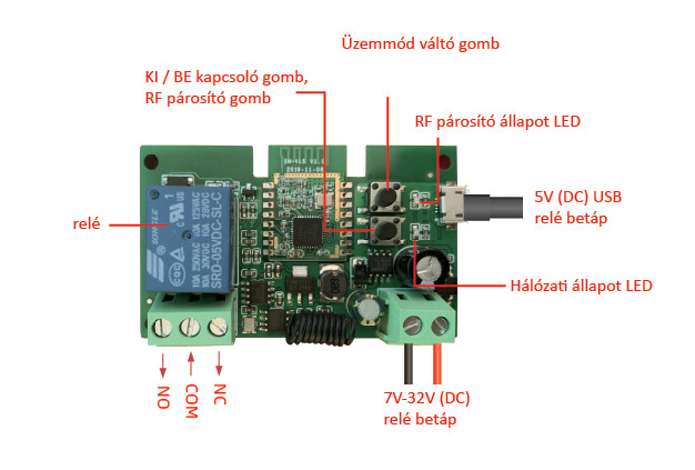 • NO/NC bekötést és kapcsolást is támogat - a relé képes áramköröket zárni és megszakítani is