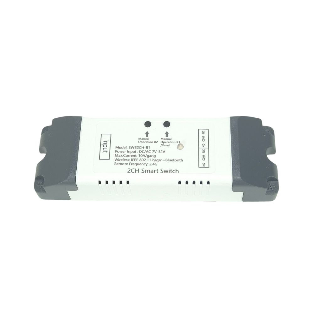 A SmartWise (Sonoff és eWeLink app kompatibilis) WiFi + eWeLink Remote kompatibilis okos kapcsolóreléje 2 áramkörrel, normál és impulzus kapcsolási üzemmóddal, potenciálmentes, azaz száraz kontaktus kapcsolással is, műanyag védőtokban. Támogatja az NO / NC bekötést is. 5V DC (micro USB) vagy 85V-250V AC tápfeszültségről is működik. Gyakran használják garázskapu vagy kertkapu motorok vezérlésére, illetve támogatja az interlock módot, így alkalmas forgómotor vezérlésre is. Ez a Wi-Fi + eWeLink-Remote (Bluetooth) verzió, mely SmartWise eWeLink-Remote távirányítókkal és vezeték nélküli fali kapcsolókkal is ki/bekapcsolható