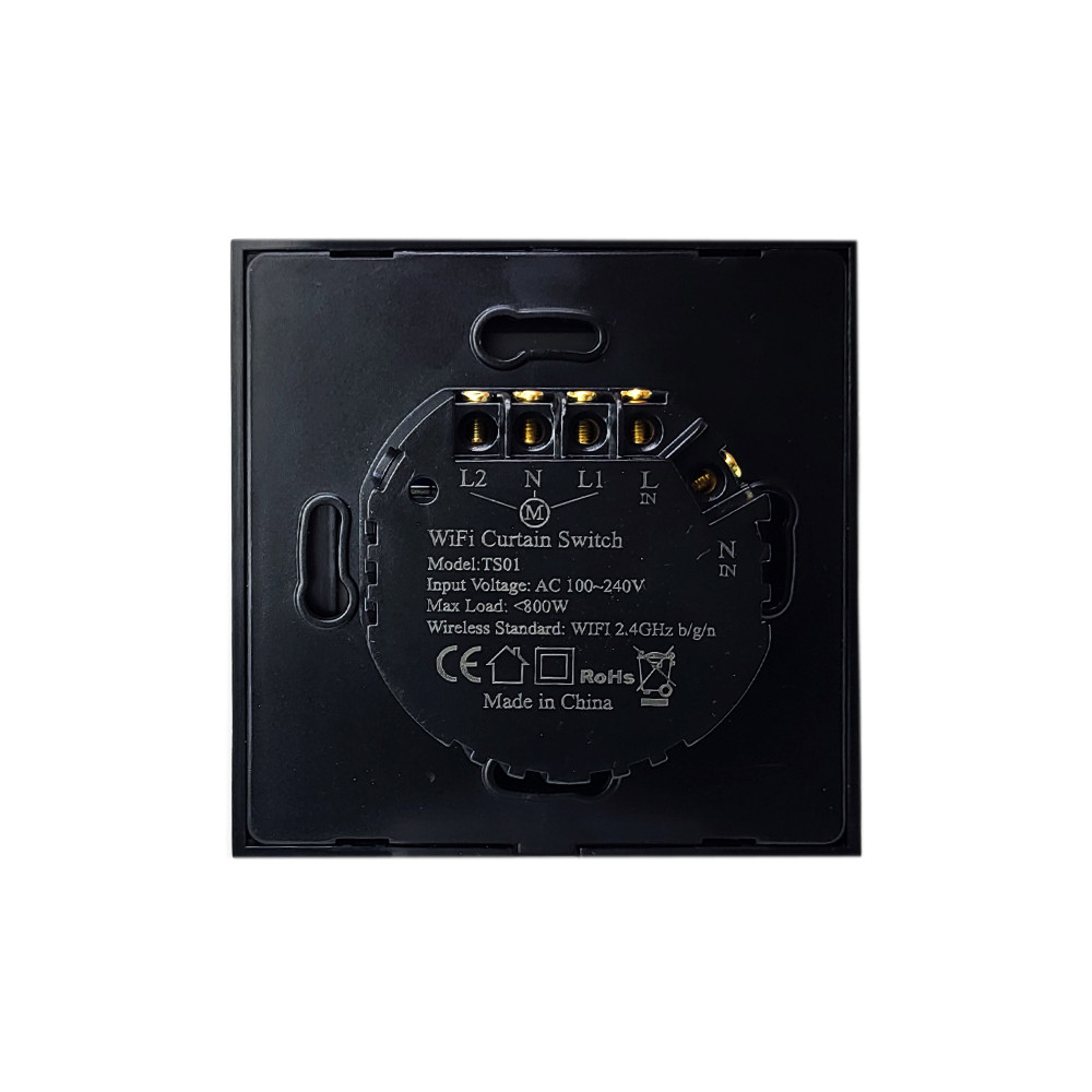 eWeLink app-kompatibilis, Wi-Fi + Bluetooth, érintős okoskapcsoló kifejezetten motoros redőnyök, motoros függönyök és motoros árnyékolók okosvezérlésére. Három gombja a NYIT / STOP / ZÁR funkciót működteti, és kalibráció után százalékos pontosságú állapot visszajelzést ad, valamint százalékos pontosságú nyitást / zárást tesz lehetővé az appból. Ez a fekete üveg előlapos verzió.