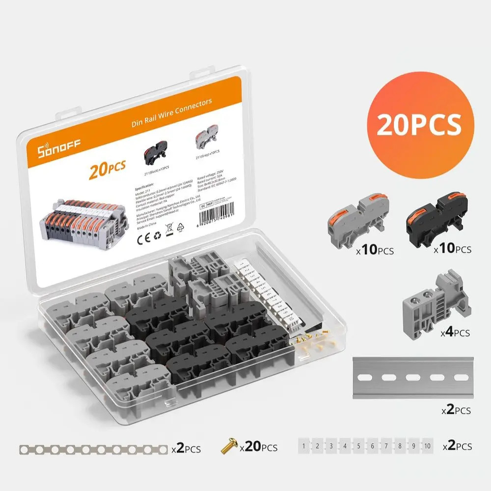 Sonoff 211 DIN-sínre szerelhető, rugós, oldható vezeték összekötő szett (20 darabos készlet)