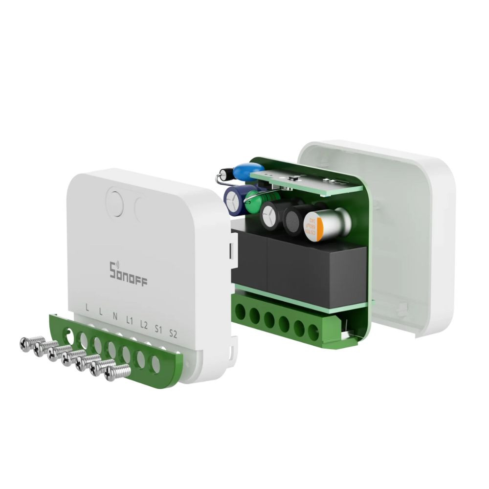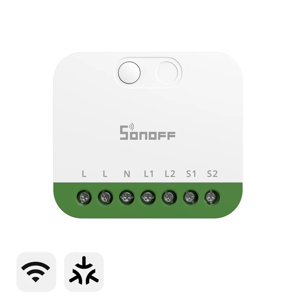 A SONOFF MINI-2GS (MINI DUO) egy ultra-kompakt, két kimenetes (2-gang) okos kapcsolómodul Matter over Wi-Fi támogatással. Szabványos kötődobozba illeszthető, és a meglévő fali kapcsolóidat okosfunkciókkal egészíti ki: távoli be/kikapcsolás, ütemezés, csoportvezérlés és jelenetek. Maximum 16 A összterhelést kezel (legfeljebb 10 A/gang ellenállásos terhelésnél), így két külön áramkör is automatizálható egyetlen, rejtett modulról.