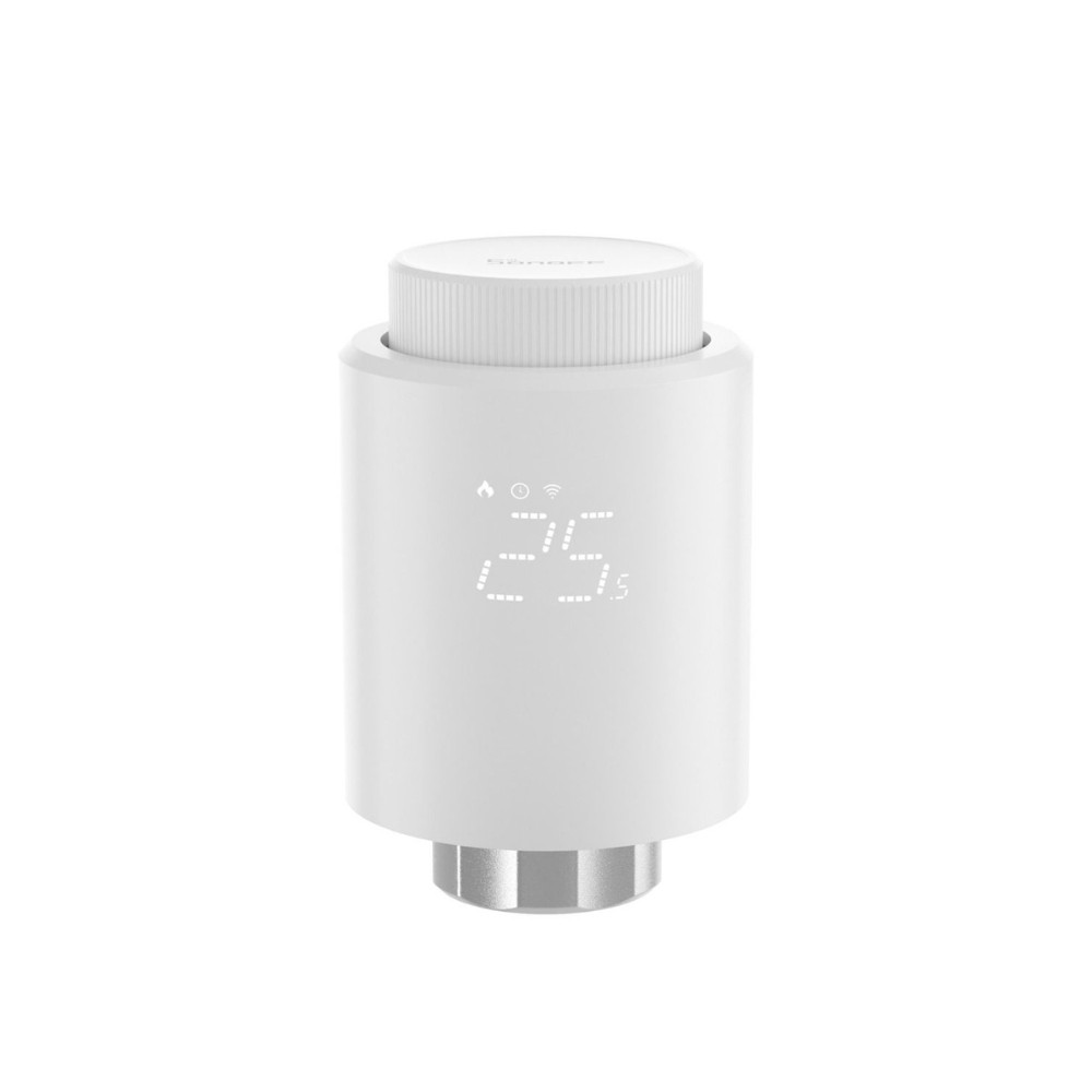 A Sonoff TRV egy Zigbee 3.0 protokollon kommunikáló termosztatikus radiátorszelep. A szelepvezérlőn és az applikációban is beállíthatod a kívánt hőmérsékletet, vagy időzítheted az értékek automatikus változását. Kompatibilis a Sonoff Zigbee Bridge Pro átjáróval.